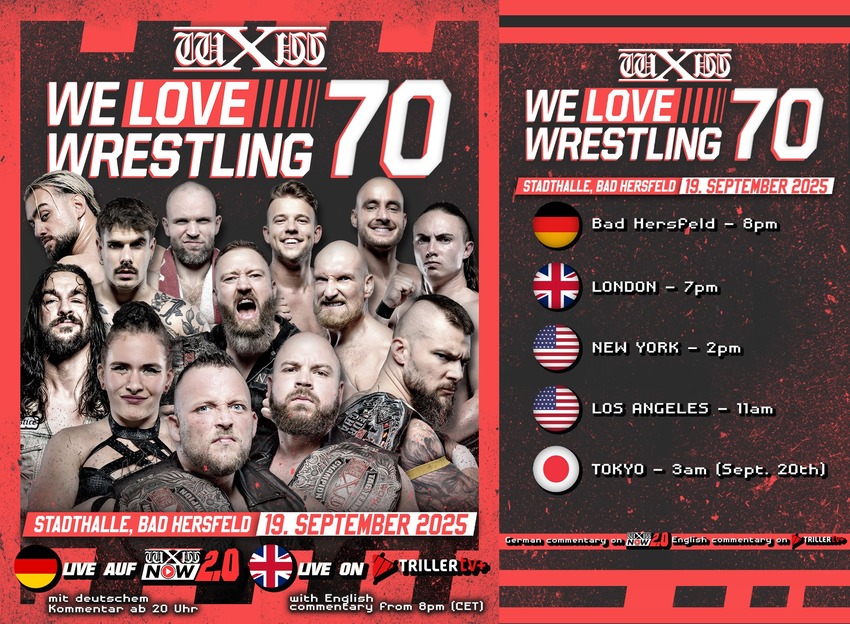 Am 19. September feiern wir mit wXw We Love Wrestling 70 unsere Premiere in Bad Hersfeld – und die Card hat es in sich! 💥