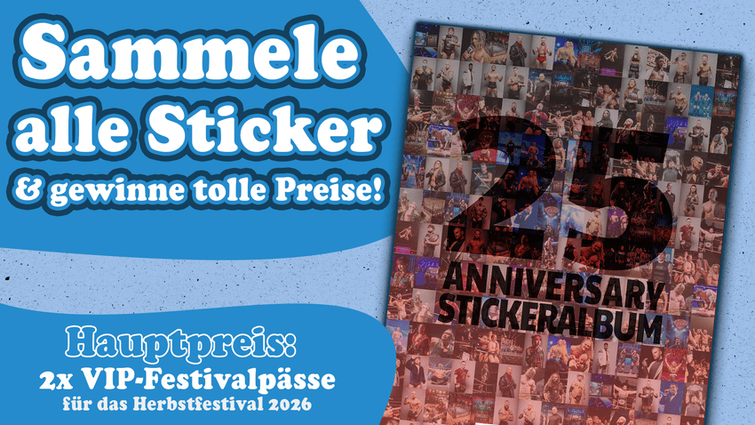Ab dem Pro-Wrestling Grand Prix könnt ihr euer vollständiges Stickeralbum bei unseren Events am Merch-Stand abstempeln lassen – und damit am großen Gewinnspiel teilnehmen! 🖊️📘