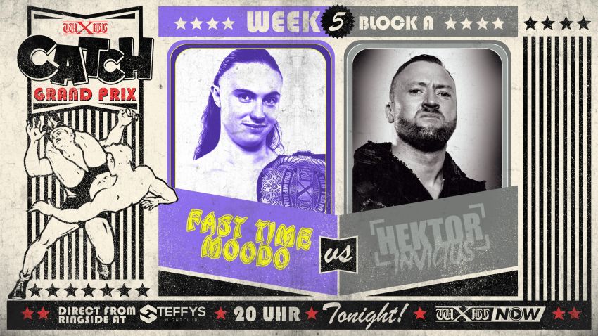 Für Fast Time Moodo geht es nach drei Niederlagen nicht mehr um den Sieg beim wXw Catch Grand Prix. Aber er wird alles geben, um dieses Match zu gewinnen. Hektor Invictus hingegen hat noch eine Chance, wenn er Moodo schlagen kann. Ob die gemeinsame Vergangenheit der beiden hier eine Rolle spielt?